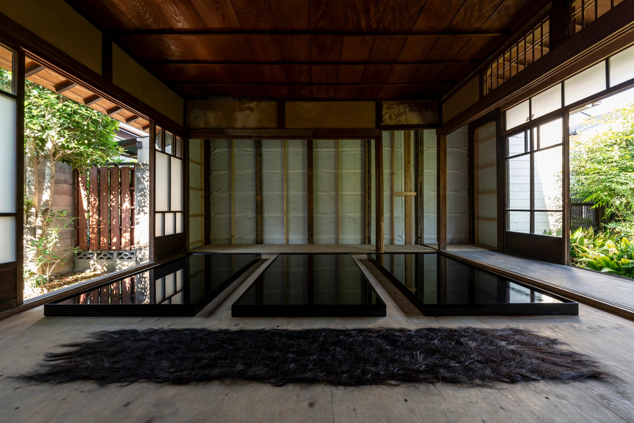 Relics of Light series, Japanese Lacquer (漆), water, black human hair, 300x300cm, Kyoto, Japan